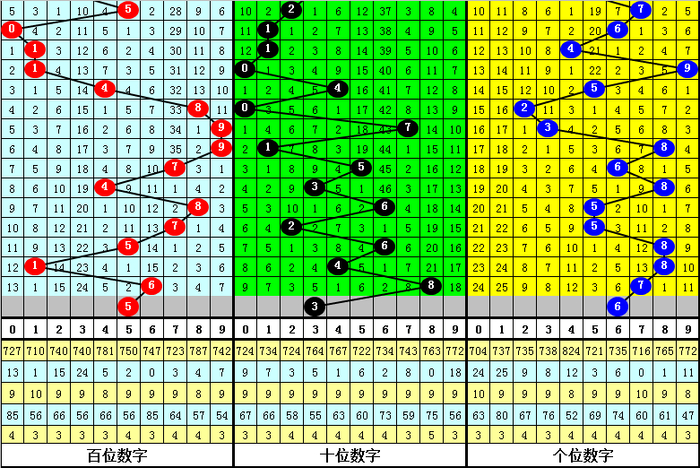 在以上统计中奖,直选021组合之后,下期奖号百位开出号码:0123678,未开出号码459,其中百位号码大小比为3:7,奇偶比为4:6,012路比为4:3:3,本期瞻望百位出现奇数号码,精选一码5。
